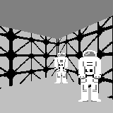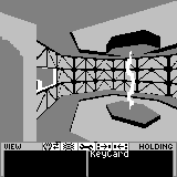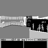 The intro sequence ends at the communication desk. Click and hold on the 3D view to move around. Move the mouse up to go forward, left to turn left, etc. Pick up a suit in the hangar. The suit will display nearby items (as in the "Control Room" screenshot above).. Click on the names in the suit's display panel (at the bottom of the screen) in order to manipulate them. The suit control buttons are, left to right: get/drop, examine, use, combine and break.